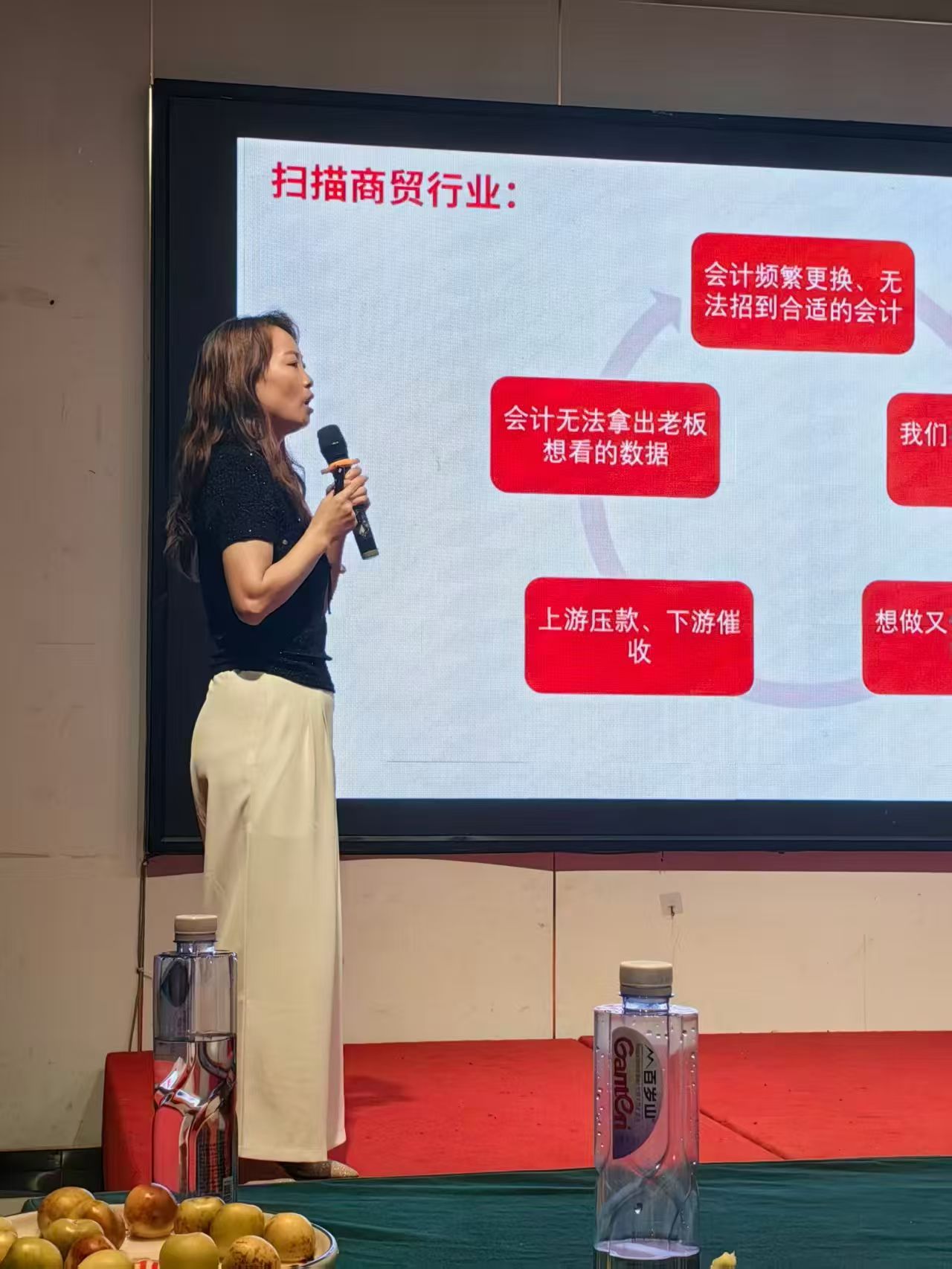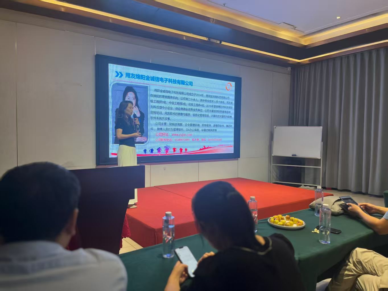 2025年9月25日下午,绵阳市供应商商会同涪城区供应行业协会共同举办了 “国庆中秋双节共庆--暨风控赋能沙龙”聚会。 绵阳金诚信电子科技有限公司总经理熊小英女士受邀参加,并针对《智慧财务赋能商贸行业降本增效》进行了精彩分享。